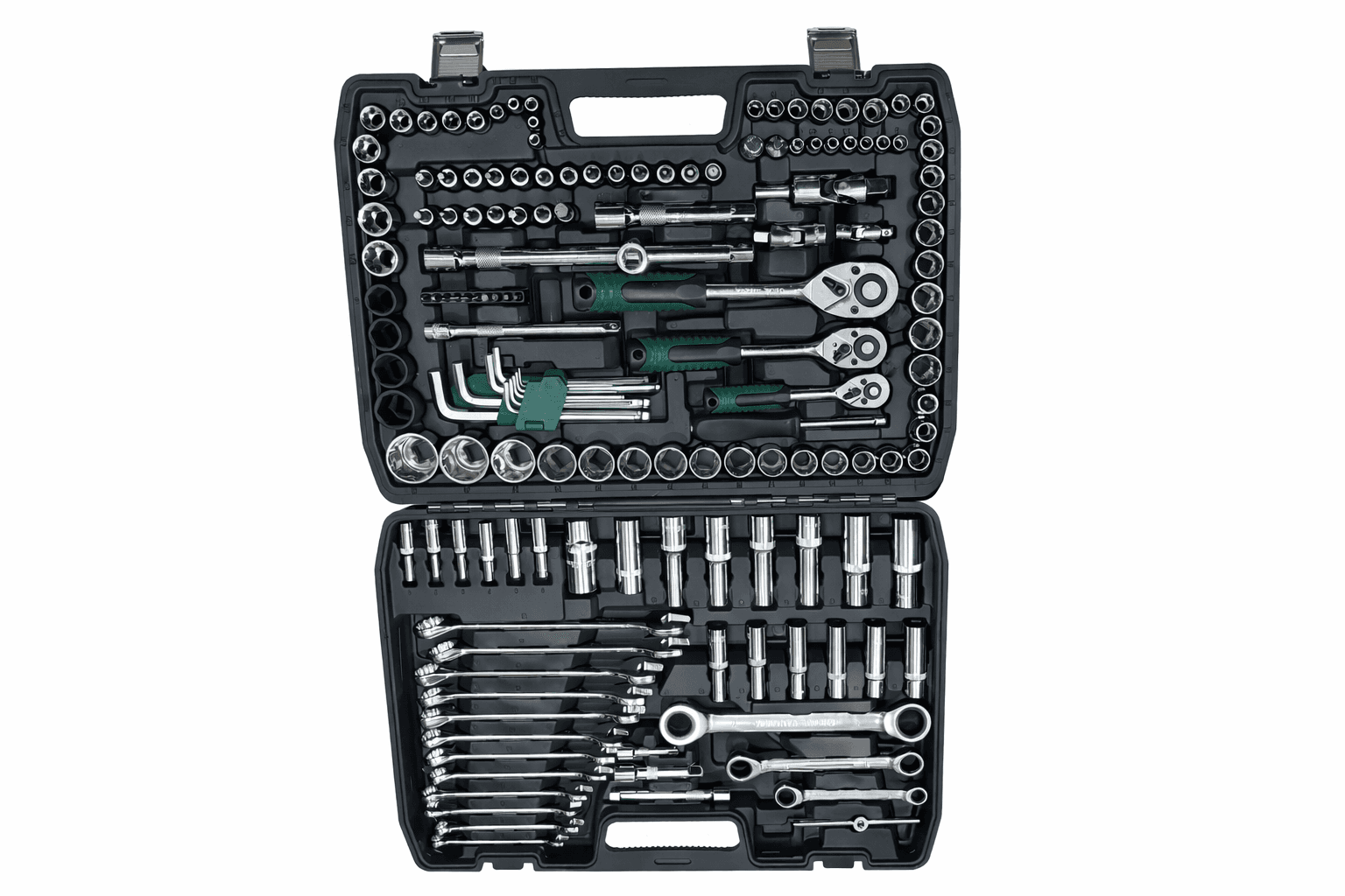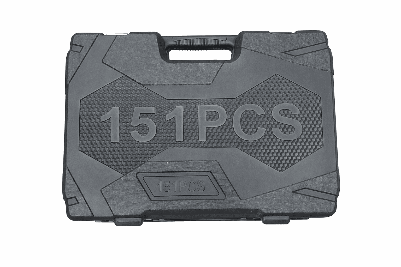 This is a 151-piece socket set packaged in a sturdy red-and-black carrying case. The box highlights that it includes sockets in 1/4", 3/8", and 1/2" drive sizes, along with ratchets, wrenches, and various accessories neatly arranged inside. The brand logo “C-W” is displayed on the top right corner. At the bottom of the packaging, additional specifications are listed: 1/2H, CH-V, 1/2, 8/8, 1/4, and 6PT, which likely refer to material composition (such as chrome vanadium steel), drive sizes, and socket point types.